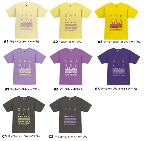 黄色・紫・チャコールグレーをベースにプリントカラーも多色展開しております。
